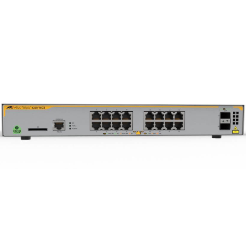 The Allied Telesis x230-18GT features 16 x 10/100/1000T ports with 2 SFP Gigabit uplink ports. A full feature-set and compact design makes it ideal for applications at the network edge, supporting Gigabit to the desktop for maximum network performance.