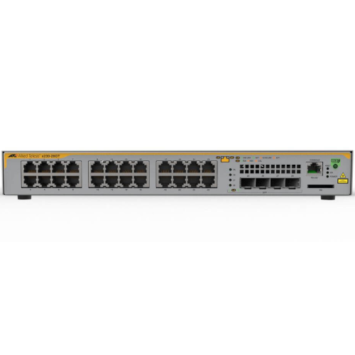 The Allied Telesis x230-28GT features 24 x 10/100/1000T ports with 4 SFP Gigabit uplink ports. A full feature-set makes it ideal for applications at the network edge, supporting Gigabit to the desktop for maximum network performance.