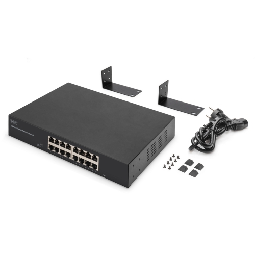 DIGITUS Switch 16-Port Gigabit, 19" unmanaged schwarz DN-80112-2