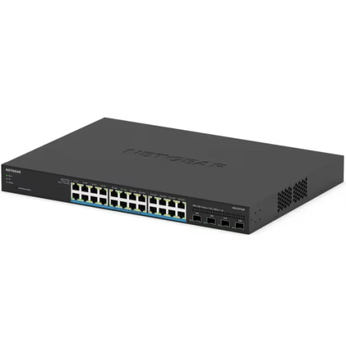 24 Multi-Gigabit 1G/2.5G ports with 4 10G SFP+ ports 24 Ultra60 PoE++ ports with uninterrupted PoE High powered 720W PoE budget Energy Efficient Ethernet for maximum power savings Quiet desktop or rackmount operation Configurable L2/L2+ network features NETGEAR Insight Remote Cloud
