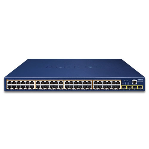PLANET GS-4210-48P4S este un switch Ethernet gestionabil L2/L4 de înaltă densitate, cu 48 porturi PoE+ 10/100/1000BASE-T și 4 sloturi SFP 100/1000BASE-X.