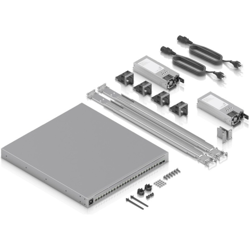 Ubiquiti network switch ECS-24-PoE-EU Enterprise-grade 24-port, Layer 3 Etherlighting PoE+++ switch with high-capacity 10 GbE RJ45 and 25G SFP28 connections for high availability system design, (16) 10 GbE, (8) 2.5 GbE ports, all PoE+++ (90W capable,