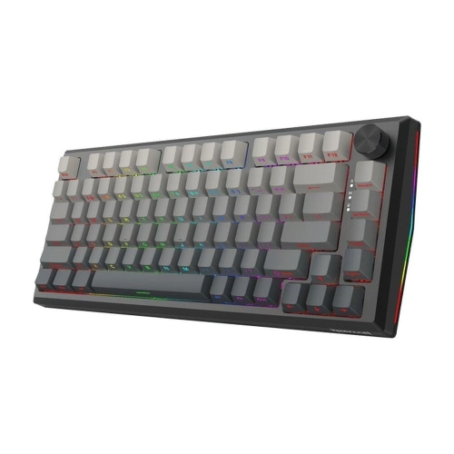 Tastatura gaming mecanica Bluetooth cu si fara fir Redragon Penumbra Pro neagra iluminare RGB, sasiu si partea superioara din aluminiu prelucrat CNC, switch-uri liniare Lion L, keycaps-uri din PBT, toate tastele fara conflict – 82 taste (n-key rollover), protocol bluetooth: 5.0, se pot conecta 3 device-uri simultan (se selecteaza device-ul pe care il folositi din switch-ul din spatele tastaturii), baterie: 4000mAh, protocol wireless 2.4 Ghz. suporta layout Windows si MAC, iluminare LED RGB a tastelor (20 moduri de iluminare, reglarea intensitatii), rotita pentru reglarea volumului si a luminozitatii, 5 straturi de material insonorizant instalat in interiorul tastaturii, tasta WIN poate fi dezactivata in timpul jocurilor, 6 taste multimedia, include switch-uri de schimb, compatibila cu majoritatea switch-urilor, conector USB Type-C, cablu USB detasabil, dimensiuni: 334x140x43mm, greutate: 1.6kg