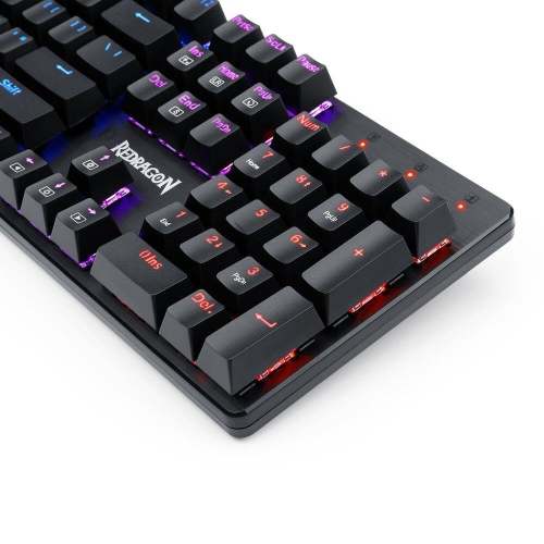RecomandatGamingFormatStandardTehnologieCu firInterfata tastaturaUSBLungime cablu1.80 mTaste numericeDaTastatura mecanicaDaTaste speciale8 taste multimediaLayout tastaturaEnglishIluminataDaLEDRainbow LED (reglarea intensitatii si 11 efecte de iluminare)SwitchSwitch-uri rosii RedragonCaracteristiciToate tastele fara conflict (n-key rollover)