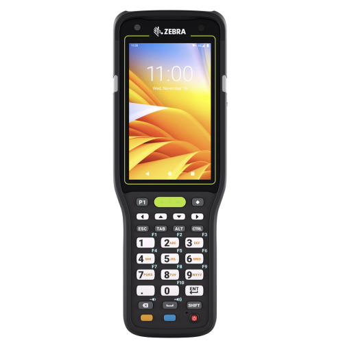 portable data collection device, 2D, imager (SE4770), screen size: 10.5 cm (4''), resolution: 480x800 pixels, keypad (Quantity keys 29 keys, numeric), GPS, straight shooter, Interactive Sensor, hot swappable, vibration, brightness 600cd, connection: USB-C, Bluetooth, Wi-Fi (Wi-Fi 6E), 5G, NFC, Micro SD-Slot, Qualcomm Octa Core, 2.4 GHz, RAM: 6 GB, Flash: 64 GB, OS: Android, incl.: Google Mobile Services, battery, 7000 mAh, protection class: IP65, IP67